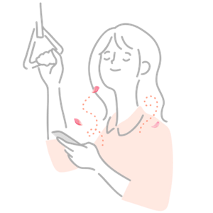 朝の電車通勤で つり革を持ったときや 満員電車で汗ばんだとき