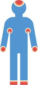 手のひらや足のうらを除く全身で汗がみられ、上がった体温を下げる働きがあります。温熱性発汗はおもにエクリン腺からの汗です。