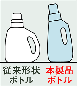 ラクに注げる ボトル形状へ! 斜めキャップで、 少し傾けるだけ!