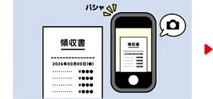 ・長いレシートで1枚の写真に収まりきらない、文字が読み取りにくい場合は、レシートを切り、横に並べて全体を撮影してください。