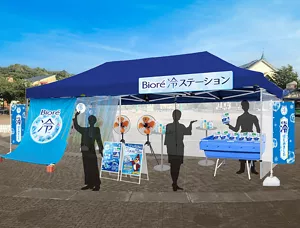 ブースでは、「冷タオル」のサンプリングのほか、日やけ止めや汗拭きシートの使用体験コーナーを設け、快適なレジャー体験をサポートします。