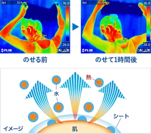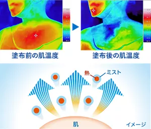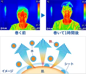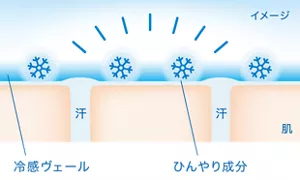 気化熱の作用で肌の熱(ほてり)を逃がし続けて、冷却効果が持続します。