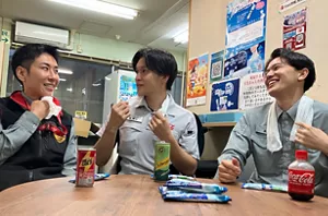 自動販売機の補充作業を行う担当者に冷タオルを使用していただきました。