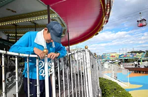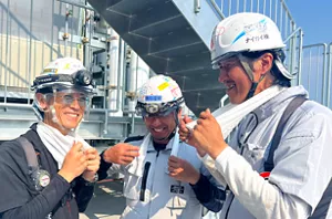 屋外での作業が続くイルミネーション設置現場で使用していただきました。暑熱対策として、水分補給やこまめな休憩は行っているものの、作業中の猛暑対策に課題を感じていたとのこと。冷タオルは休憩時に使うだけでなく、頸部を冷却しながら作業できるのがありがたい、とスタッフから好評の声をいただきました。