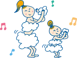 歌ったり、おしゃべりしたり、洗いあったり、遊んだり。