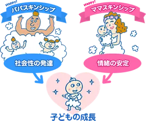 パパと子どものスキンシップ“パパスキンシップ”は、子どもの社会性を伸ばし、ママと子どものスキンシップ“ママスキンシップ”は、子どもの情緒を安定させる別々の役割があるんです。
