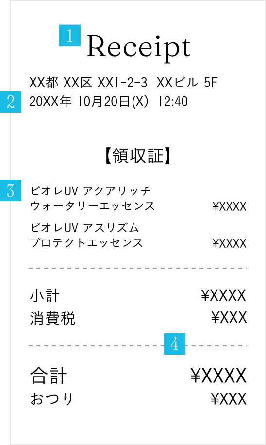 - 撮影する際はピントを合わせ、購入店名、購入店電話番号、購入日時、対象商品名、価格がきちんと読み取れるように撮影してください。