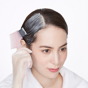 新しく生えた根元の白髪を染める(リタッチする)ときは、クリームタイプのヘアカラーがおすすめです。まず新しく生えた部分にだけ、ヘアカラー剤をつけます。