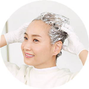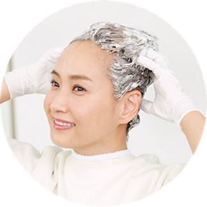 乾いた髪全体にたっぷり泡をつけてもみこむ。