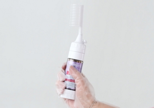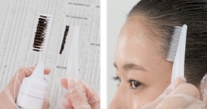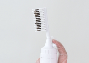 細かい部分は「生えぎわ用クシ」がおすすめです。クシの片面に、泡を少量移し取り、泡が地肌につかないようにしながら、根元付近になじませます。