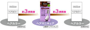 ヘアカラーして3週間、根元の白髪、色あせ、パサつきが気になってきたら、ヘアマニキュアで髪を傷めず、色ツヤをプラス。いつもきれいな髪色でいられます。