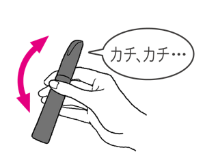 キャップを閉めたままカチカチ音がする状態で約10回振ります。