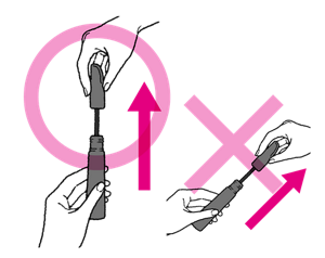 ※容器を横にしたまま、キャップを開けたり、ブラシを引き抜いたりすると液がこぼれることがあります。