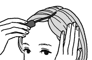 ブラシを髪や頭皮に押し付けることなく、なでるようにすると、きれいに塗れます。