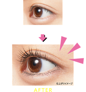 毛先に向けて引き上げながらまつ毛を立ち上げるようにつけてください。