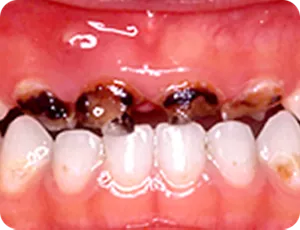 ほ乳びんで甘い飲み物を飲ませていると起こるむし歯です。