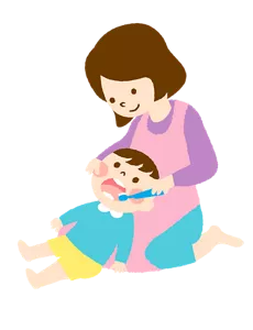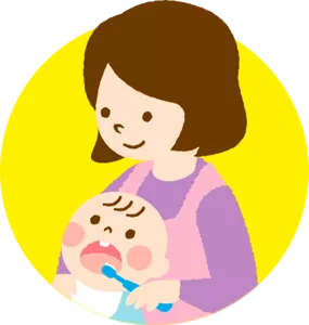 上の前歯が生えてきたタイミングで、子どもをひざに寝かせて「寝かせみがき」をスタートします。ハブラシは、歯ぐきに当たっても痛くない、毛先のやわらかいものを選ぶといいでしょう。