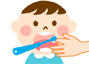 上の前歯が生えてきたタイミングで、子どもをひざに寝かせて「寝かせみがき」をスタートします。ハブラシは、歯ぐきに当たっても痛くない、毛先のやわらかいものを選ぶといいでしょう。