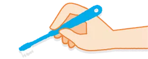 仕上げみがき用ハブラシは ①お口の中もよく見え、1本1本磨ける小さいヘッド ②ペングリップで歯を色々な角度で磨きやすいペンシルハンドル