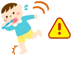 歯みがきの第一歩は、ハブラシに慣れさせることです。乳歯が生えはじめる生後6カ月ごろから、赤ちゃん用のハブラシを持たせるようにします。ちょうどこのころは、何でも口に入れたがる時期なので、ハブラシも抵抗なく、口の中に入れてくれるはずです。ただし、歩けるようになったら要注意。歩きながらくわえさせると、思わぬケガにつながることもあるからです。ハブラシを持たせるときは必ず座らせて、目を離さないようにしてください。