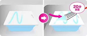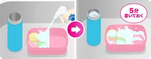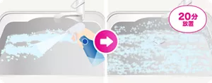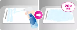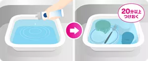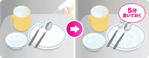 一度洗った食器・調理用具を20分以上つけおいた後、水で洗い流す。
