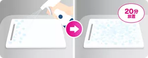 片面に約10回まんべんなくスプレーし、約20分放置後水で洗い流す。