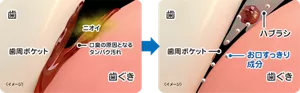 口臭の原因となるタンパク汚れを、固めて洗浄しやすくします。