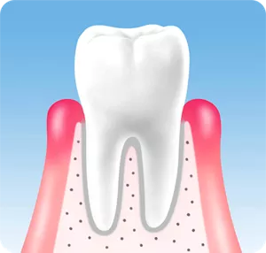 歯と歯ぐきの間にわずかな溝がある程度です。