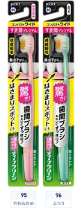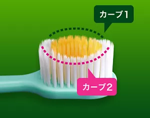 カーブ1 歯間ブラシ毛 はさまりスポットに集中して入りつまったモノを押し出す カーブ2 歯列フィット毛 歯や歯ぐきをやさしく包み込み歯並びに沿って安定して磨ける