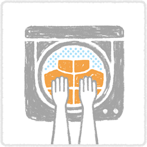 汗を吸いやすいため、皮脂汚れやニオイ汚れをしっかり落としましょう。シワになりやすいので、脱水時間は短めに。