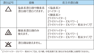 ただ、酸素系漂白剤の中には、毛・絹などには使用できないタイプのものもあります。衣類の表示の漂白記号だけでなく、素材やその他の注意表示、および漂白剤の表示も確かめてからお使いください。