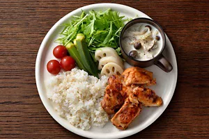 鶏のみそ照り焼き/ 彩り野菜のピクルス/ ミルク豚汁/ 麦ごはん