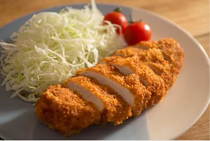 小さく切って揚げるより 大きいまま揚げることで衣の量が減り、 さらに細かいパン粉を使うことで吸油量ダウン!