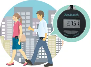 「ホコタッチ」は、加速度センサーを内蔵した「ホコタッチ専用歩行計」と、これに蓄積されたデータの結果を印刷する「ホコタッチスポット」を組み合わせた健康支援サービスです。歩行の質(速度)と量(歩数)から導いた「歩行生活年齢」などの指標を示し、若々しい歩き方の習慣化を図ります。自治体における介護予防事業から企業の健康づくりなど幅広い分野と用途でご活用いただけます。