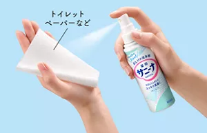 「サニーナ スプレー」をトイレットペーパーなどにスプレーして拭くと、肛門周辺部やデリケートゾーンの皮膚を保護し、清潔に保ちます。また、おむつかぶれも防ぎます。