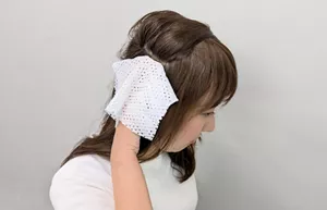 長い髪はタオルではさんで汚れをたたくように拭き取ります。このとき、髪同士が強くこすれ合わないように注意しましょう。