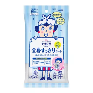 市販の顔・体用のボディシートや汗拭きシートで、顔と体の汚れを拭き取ります。