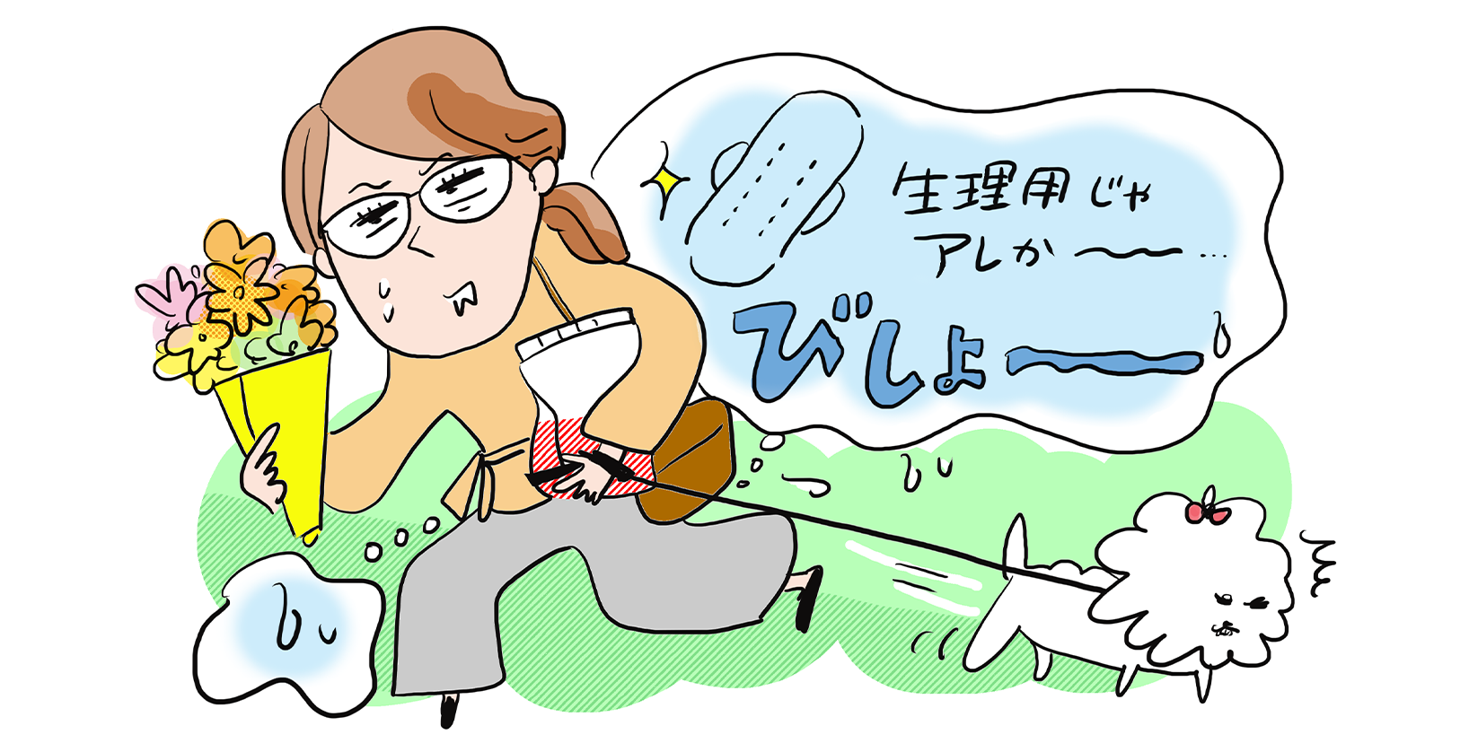 外出時は生理用ナプキン。モレるとナプキンがびしょぬれに