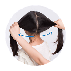 髪を左右2つに分けて、両サイドの髪を高い位置で結びます。