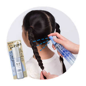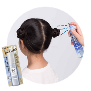 仕上げに髪全体にウォータータイプのケープを吹きかけて、整えれば完成!