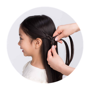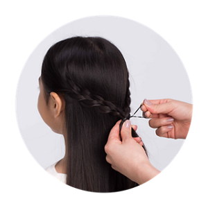 サイドの髪を耳の前と後ろの2つに分け、耳前の髪で両サイドに三つ編みを作ります。