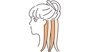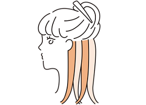 下の部分を巻き終わったら、 上の髪をおろして同じように巻きます。