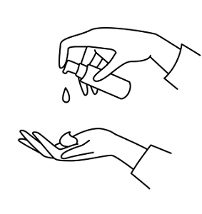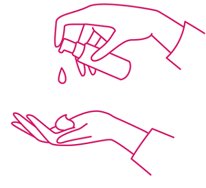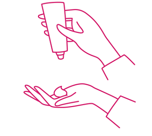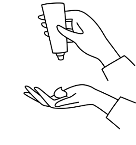 1~2プッシュずつ手に取り、手のひらでよくのばします。(セミロングヘア全体で、3~4プッシュ程度が目安です。)