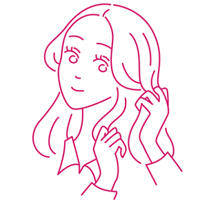 手のひら全体によくのばして、髪の毛先を中心に、下からもみこむようになじませます。