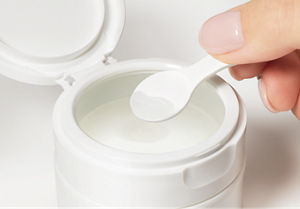 付属のスパチュラで適量をとり、