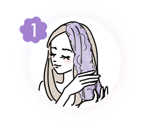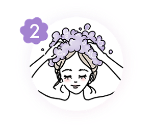 2~3分放置いただくと効果を感じやすいです。また、ヘアオイル等のスタイリング剤が多く残っている場合は、効果が弱まる可能性があるので、先に通常のシャンプーを使用した後に、カラーシャンプーを使用することをおすすめします。