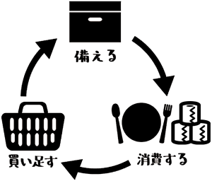 そして、この今ある普段の買い置きに、少し余分に買い足し、食べたり使った分だけ補充することを繰り返す「ローリングストック」の方法なら、無理のない備蓄が続けられます。