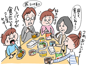 A.非常時は、アルファ米、乾パン、保存用の缶詰など食べ慣れない物を食べることになります。あまりにも味覚に合わないと食べられないこともあり、購入時に味見をしてから気に入ったものを備蓄したり、消費期限が近づいたら、入れ替えもかねて非常食パーティーなどをし、味見やどうやったらおいしく食べられるかなど実践してみるのも一つのアイデアです。