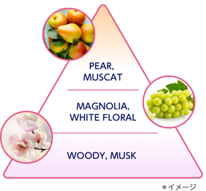 みずみずしいフルーツに清らかなフローラルを 重ねたまるでルームフレグランスのような香り
