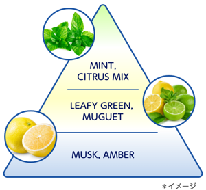 スッキリとしたミントに軽やかなシトラスミックスをブレンドした清々しくフレッシュな香り